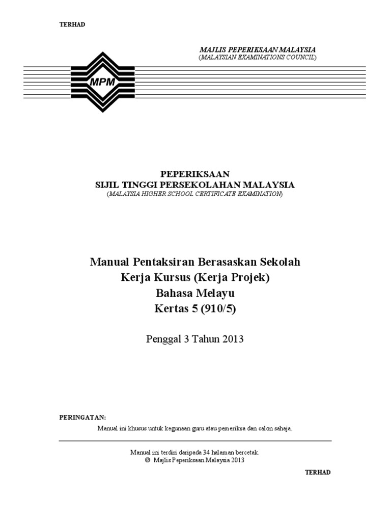 Manual pbs stpm kerja kursus kerja projek bahasa melayu bm. Majlis Peperiksaan Malaysia 2013.